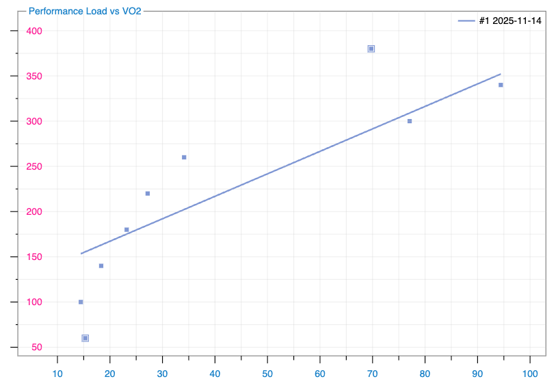 “Based on your body composition (22% body fat, moderate lean mass) and the non-linear relationship visible in the Performance Load vs VO2 graph, the algorithm likely misclassified your VO2 max. You’re not a high-elevation Olympic athlete in the top 1% of the top 1%. The software assumed a linear power-to-oxygen relationship that doesn’t apply to your physiology.”