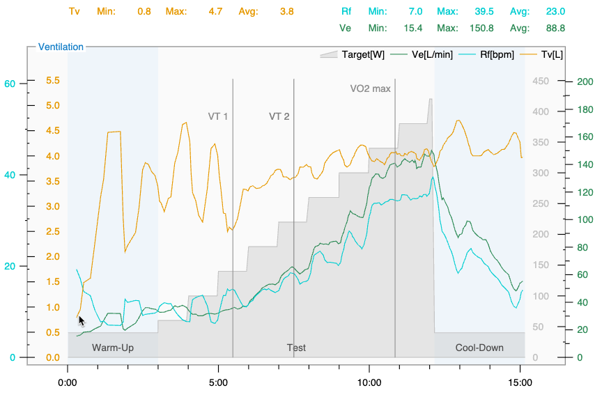 Respiratory Frequency: 44 brpm (normal for max effort)
