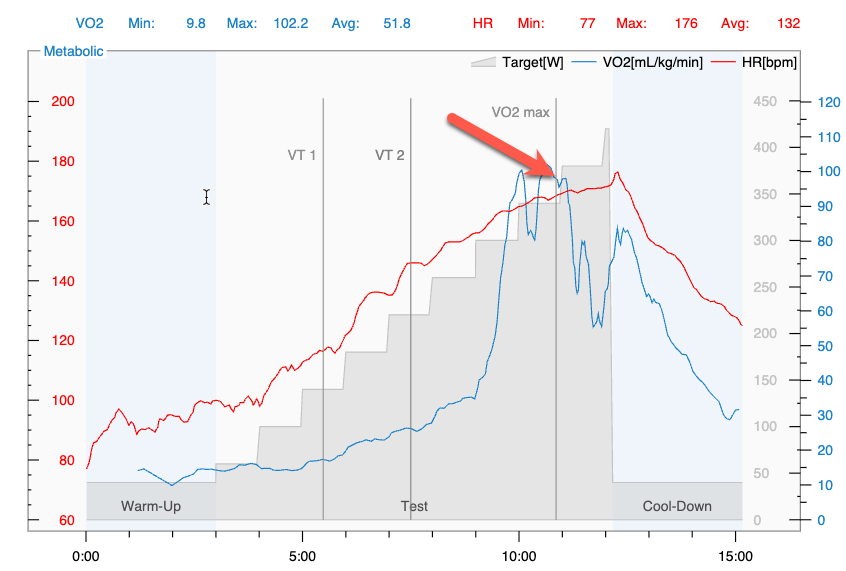 It’s supposed to find your VO2 max—the maximum amount of oxygen your body can utilize during intense exercise. The gold standard measurement for cardiovascular fitness and aerobic capacity.