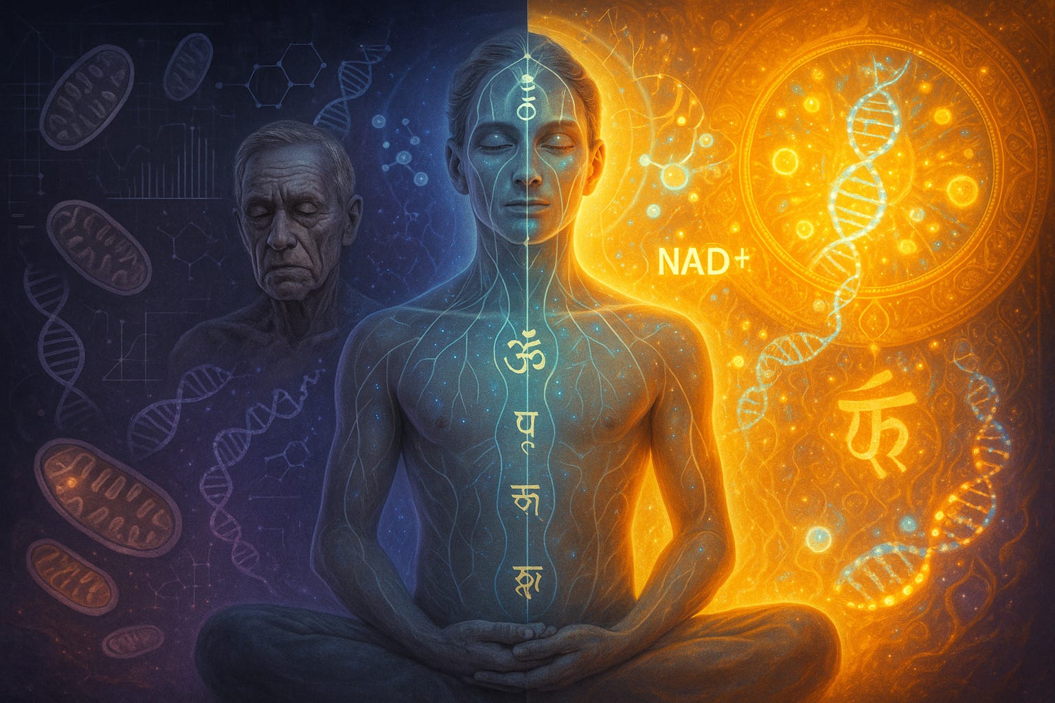 My approach is fundamentally different. Yes, there's a carefully crafted supplement stack (which I'll share in detail), but it's built on a foundation of decades of inner work: 20+ years of yoga, bending and stretching my body into impossible shapes. 7+ years of tantra practices, learning to cultivate and direct energy in ways most people don't know are possible. And over 40 years of meditation, starting when I was just 4 years old, developing a relationship with consciousness itself.